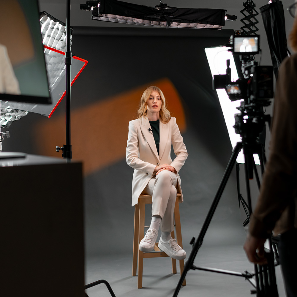 We produce clean, high-quality talking head interviews and multi-cam podcast setups built for YouTube, LinkedIn, Spotify, and internal communication channels. Our services include multi-camera interview setups, mobile podcast production, professional audio engineering, studio-style lighting, and multi-platform content delivery.